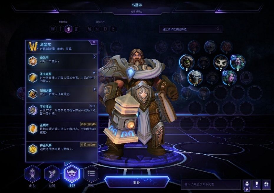 首先让我们了解一下乌瑟尔的技能 作为乌瑟尔招牌的圣光术有着优秀的瞬间抬血能力,在基础技能内可谓无出其右。 圣光普照有着不错的团补能力,其射程距离有时候还能作为补刀技能来使用。